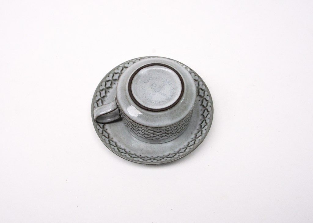 Another of the hugely popular designs by Jens Quistgaard for Kronjyden Nissen Denmark c1968 was “Cordial” . This was another of the stoneware series Quistgaard designed – but the matte glaze surfaces of “Contrast” and “Azure” were now replaced with a more versatile and user friendly satin gloss glaze.