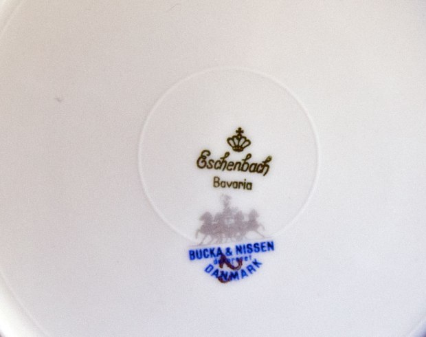 It is not clear if the design was printed onto “blanks” from Eschenbach Bavaria, or simply a finished product over-stamped by Bucka & Nissen for sale in Denmark under the Bucka Nissen brand name. Either way it is a very smart and design with classic mid-century elements, on high quality German porcelain.