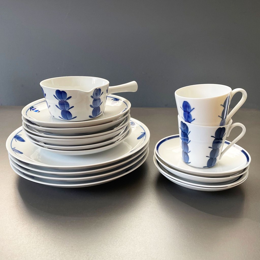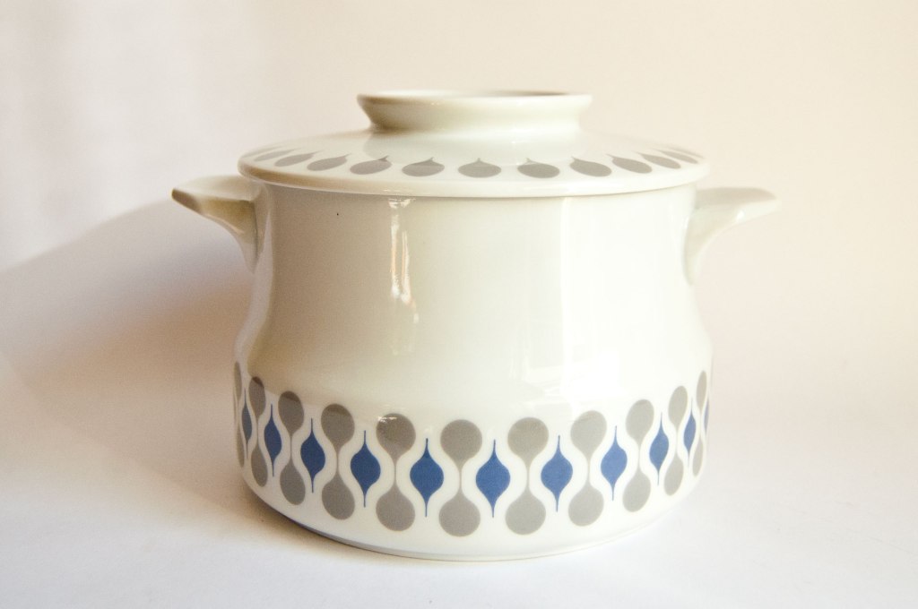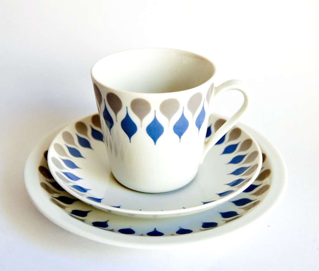 The first pattern below by Lyngby Denmark is called Danild 66, sometimes referred to as Blue Drops( in English) amongst other terms, and it was produced from the mid 1950’s onward….it was part of a very popular range called Danild, Dan-ild, or Dan-fire….each named “Danild” with a numbering system following <Danild xy etc.>. Each of the patterns in the Danild series was put onto the same forms.