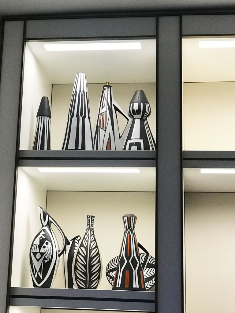Michael Andersen Denmark, Group of Marianne Starck Designs Including Negro and some of its variations, plus other designs with similar tribal style designs from the same era by Marianne. Photo from Henrik, Denmark.