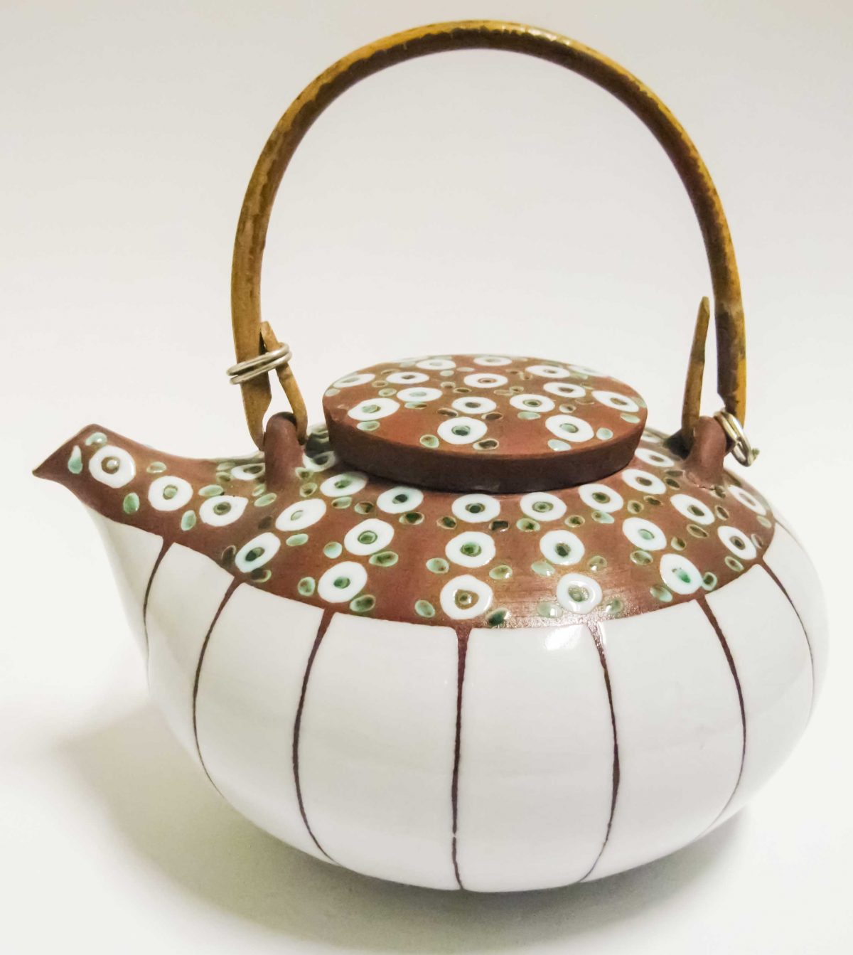 An early teapot by Ady, which I think shows the influence of Zeuthen Keramik with the use of a decorative pattern on a white satin glaze on red clay