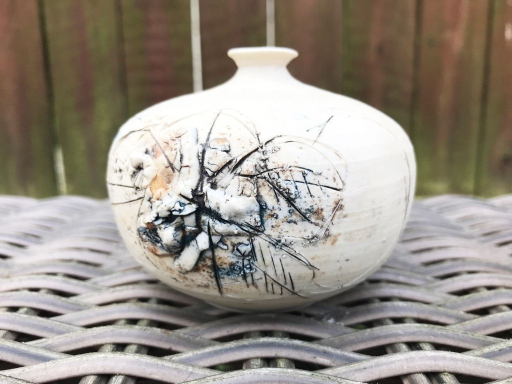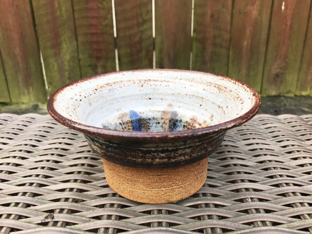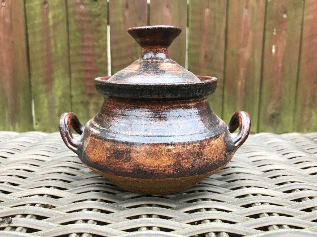 I rarely see his work for sale anywhere online, and the first image below is the only piece I have ever had by Ib Helge. It was a large jar – about 30cm tall, with lovely white glaze with iron flecks and nicely a nicely painted motif around the outside. The detailing of the lid and handles is what attracted my attention to the piece – as to me it showed the work of a maker with flair and a high level of skill.