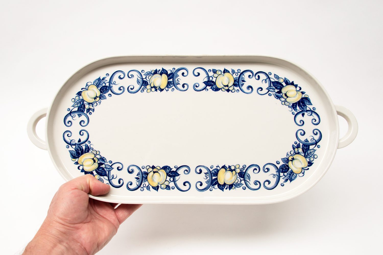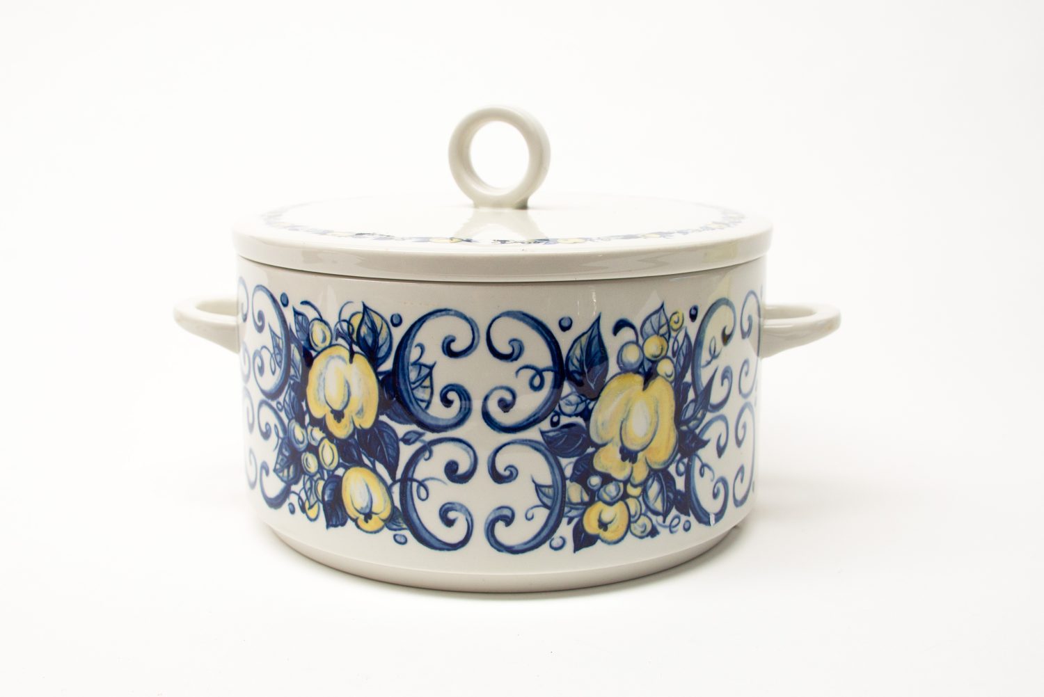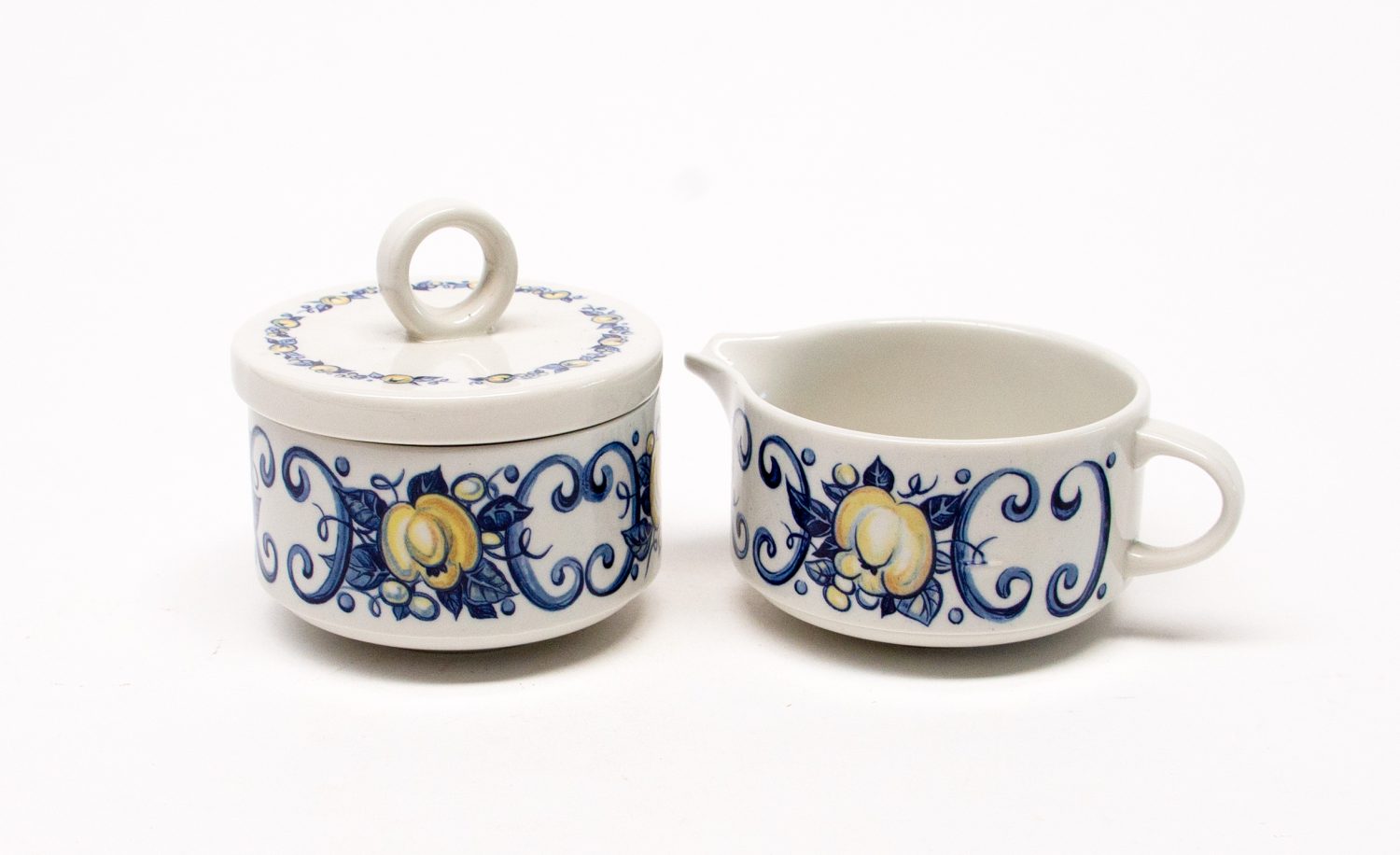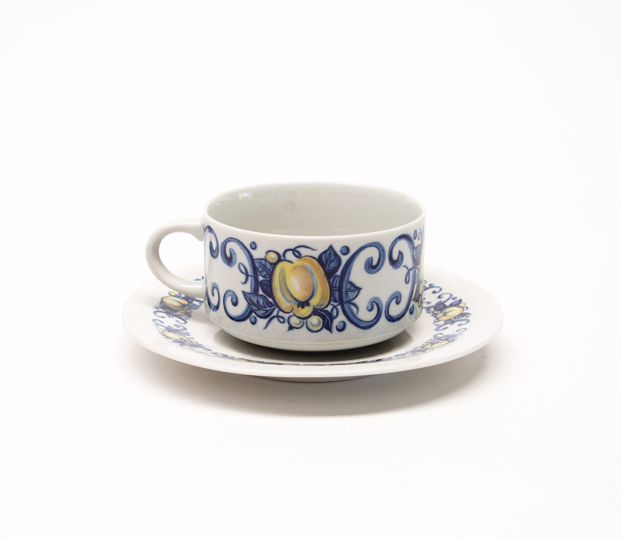 Villeroy & Boch “Cadiz” was produced by the Luxembourg Faiencerie c1970 until end of 1984. It is a beautifully decorative design in blue and yellow on a white ground reminiscent of Spanish and Portuguese ceramic tiles (Azulejos)